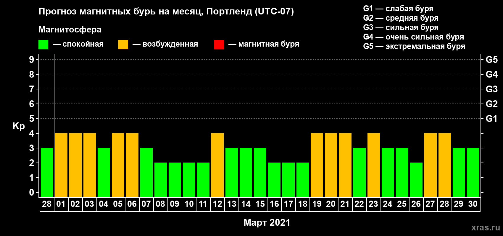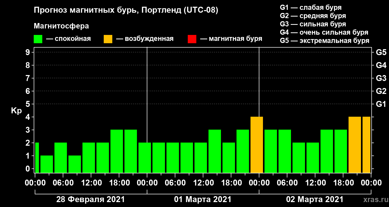 Прогноз магнитных бурь в Портленде на 28 февраля 2021 года