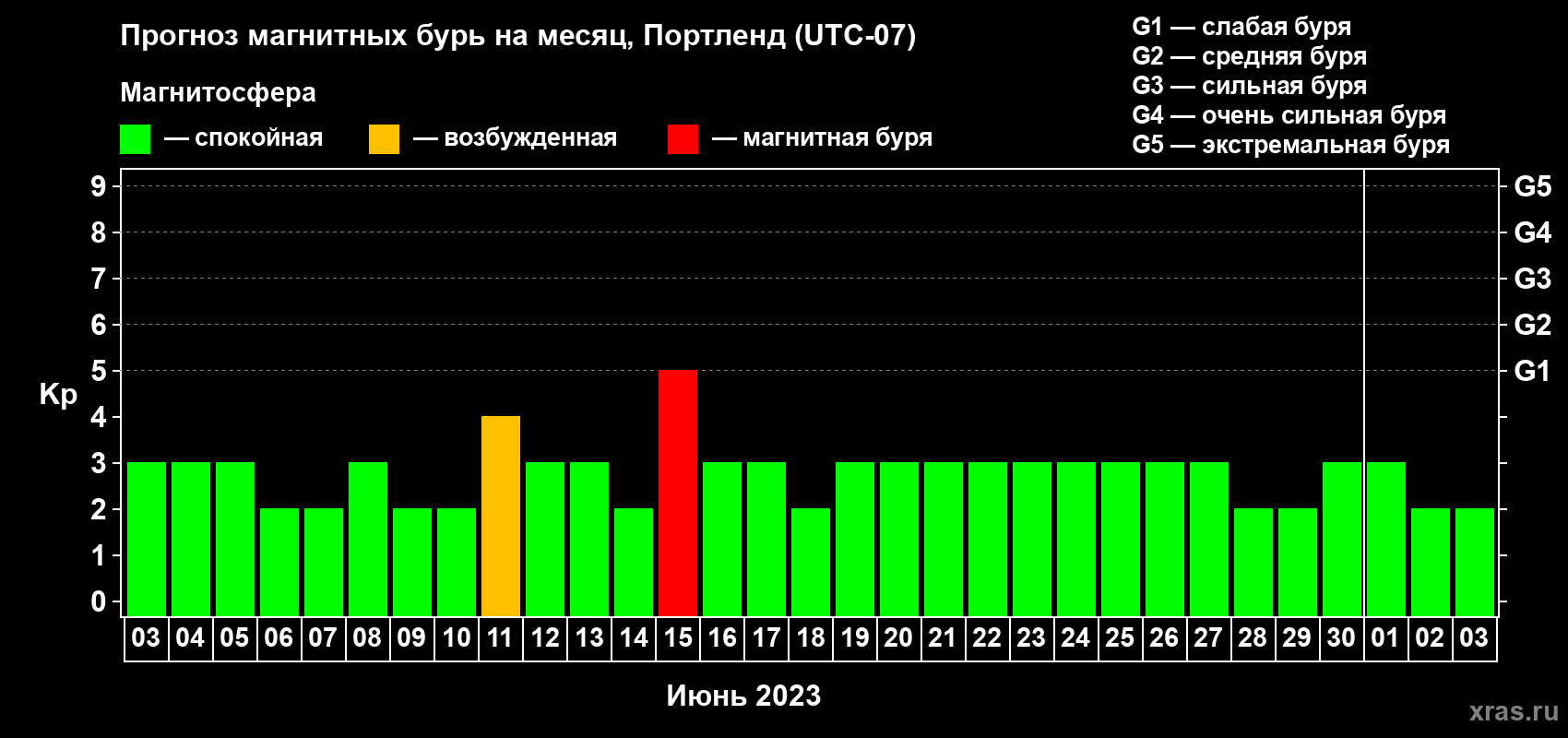 Прогноз магнитных бурь в Портленде — 3 июня 2023 года