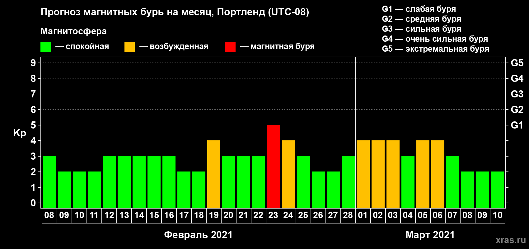 Прогноз магнитных бурь в Портленде — 8 февраля 2021 года