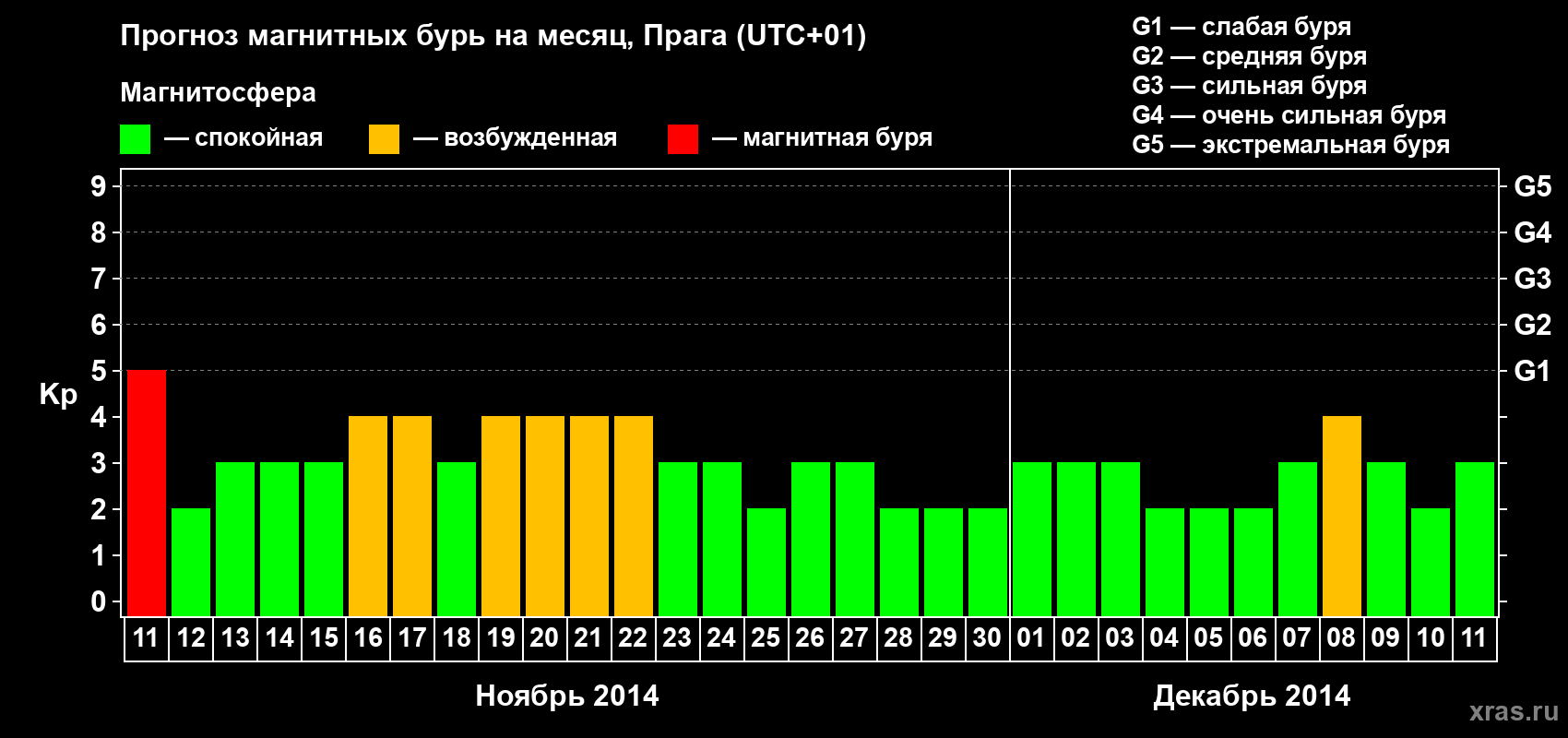 Прогноз магнитных бурь в Праге — 11 ноября 2014 года