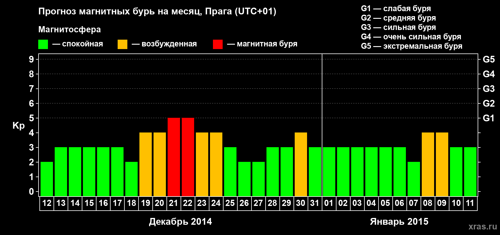 Прогноз магнитных бурь в Праге — 12 декабря 2014 года