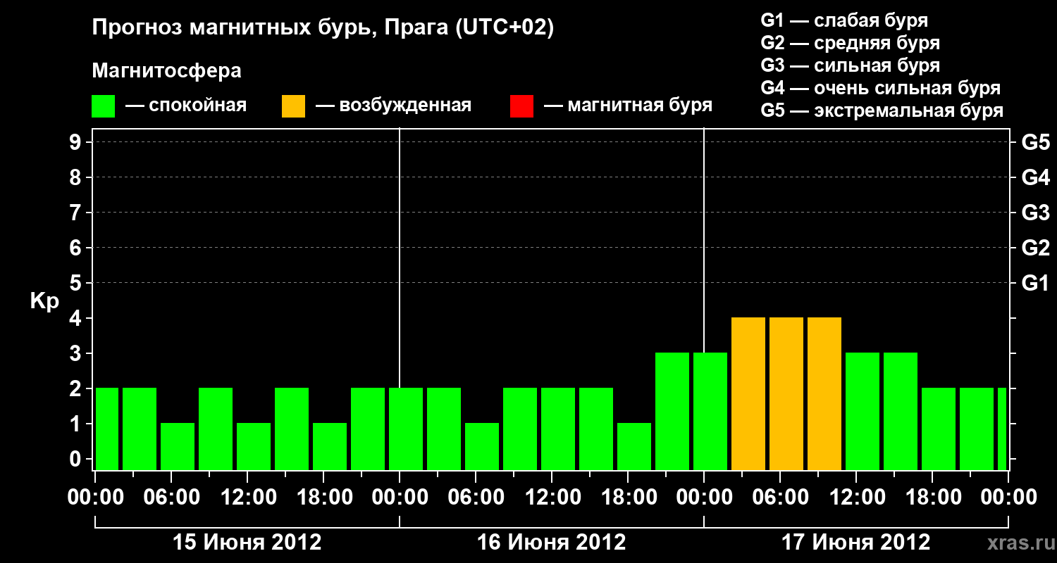 Прогноз магнитных бурь в Праге на 15 июня 2012 года