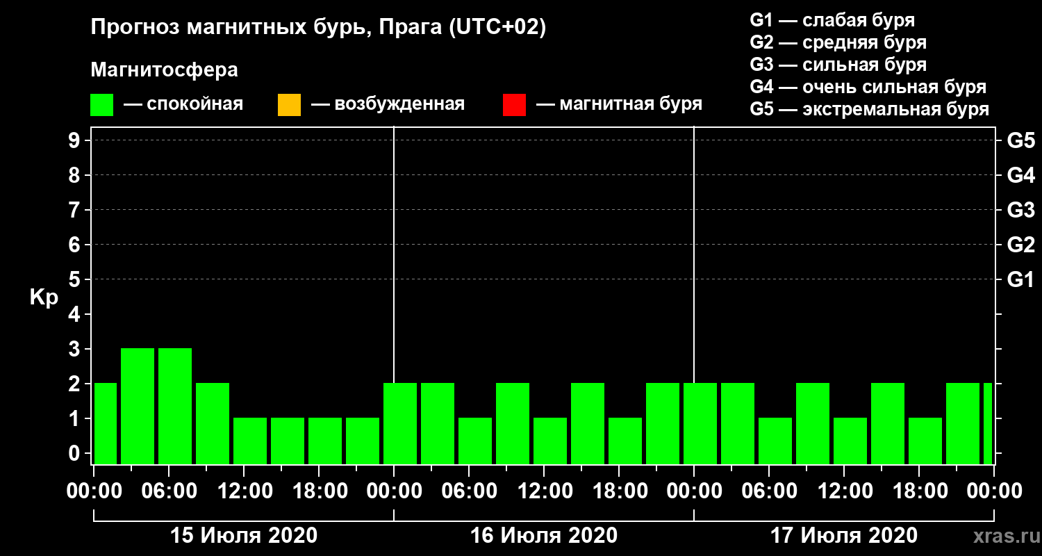Прогноз магнитных бурь в Праге — 15 июля 2020 года