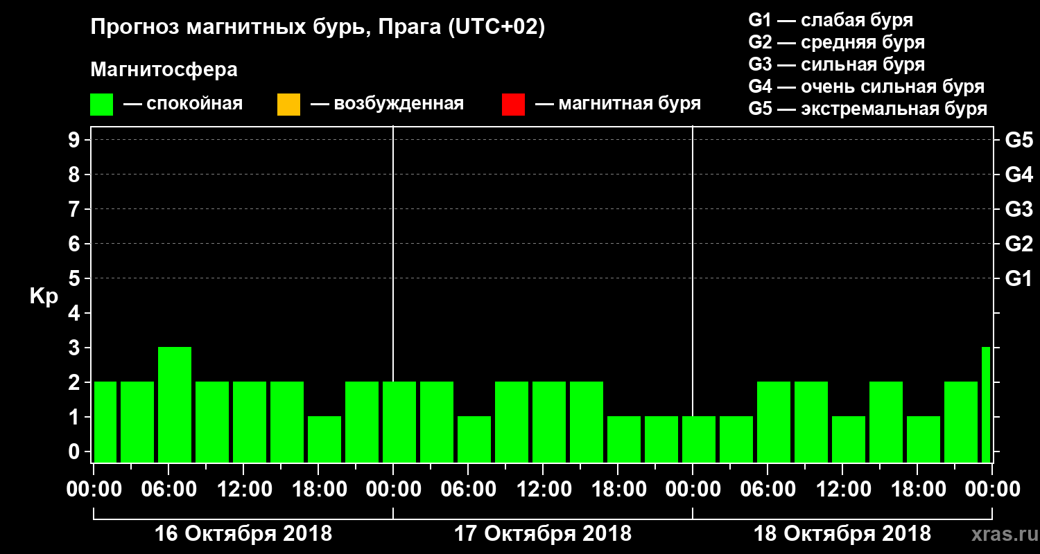 Прогноз магнитных бурь в Праге на 16 октября 2018 года