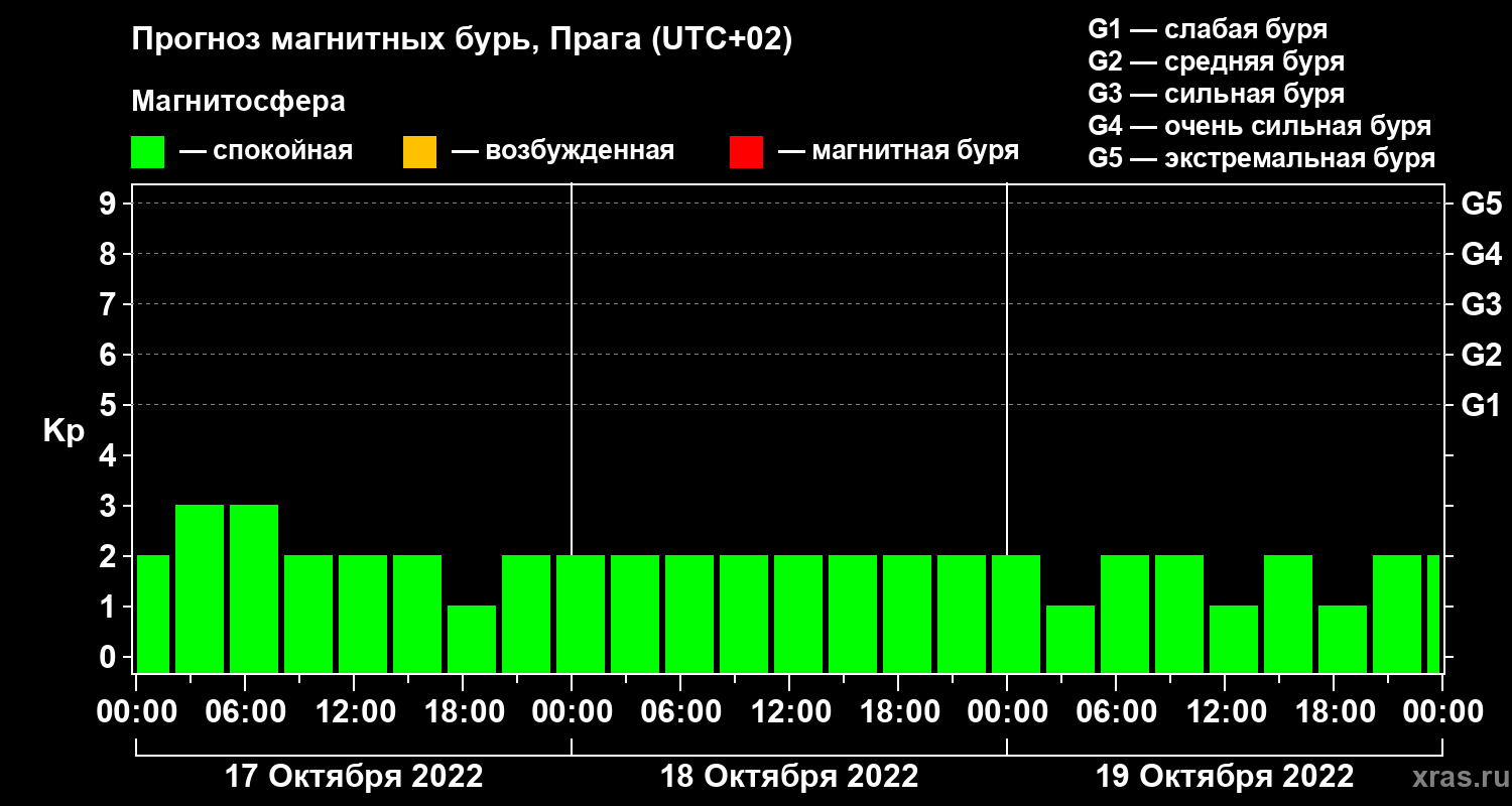 Прогноз магнитных бурь в Праге — 17 октября 2022 года