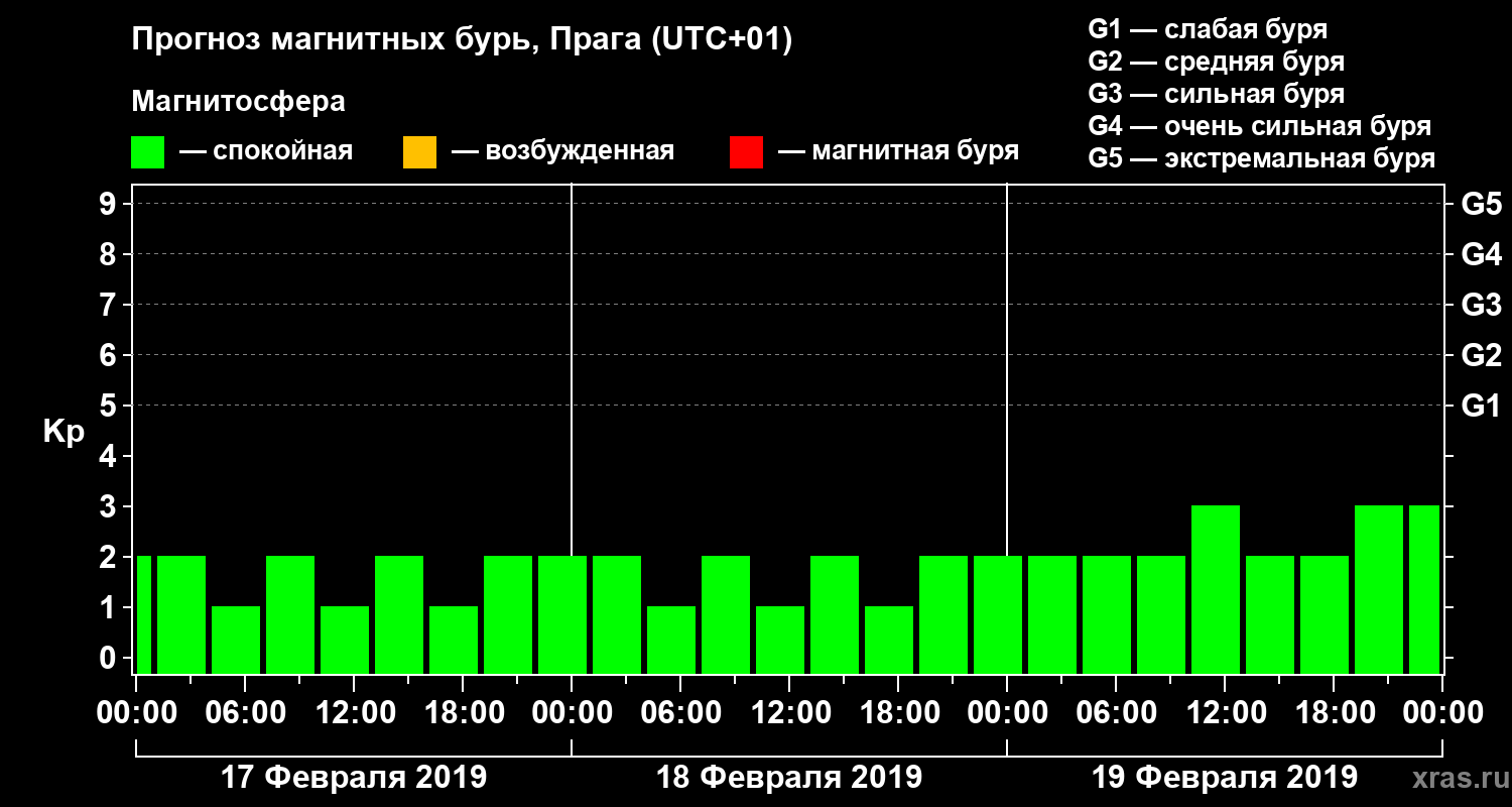 Прогноз магнитных бурь в Праге — 17 февраля 2019 года
