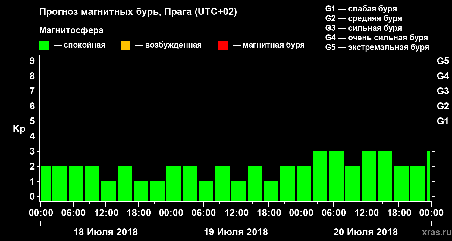 Прогноз магнитных бурь в Праге — 18 июля 2018 года