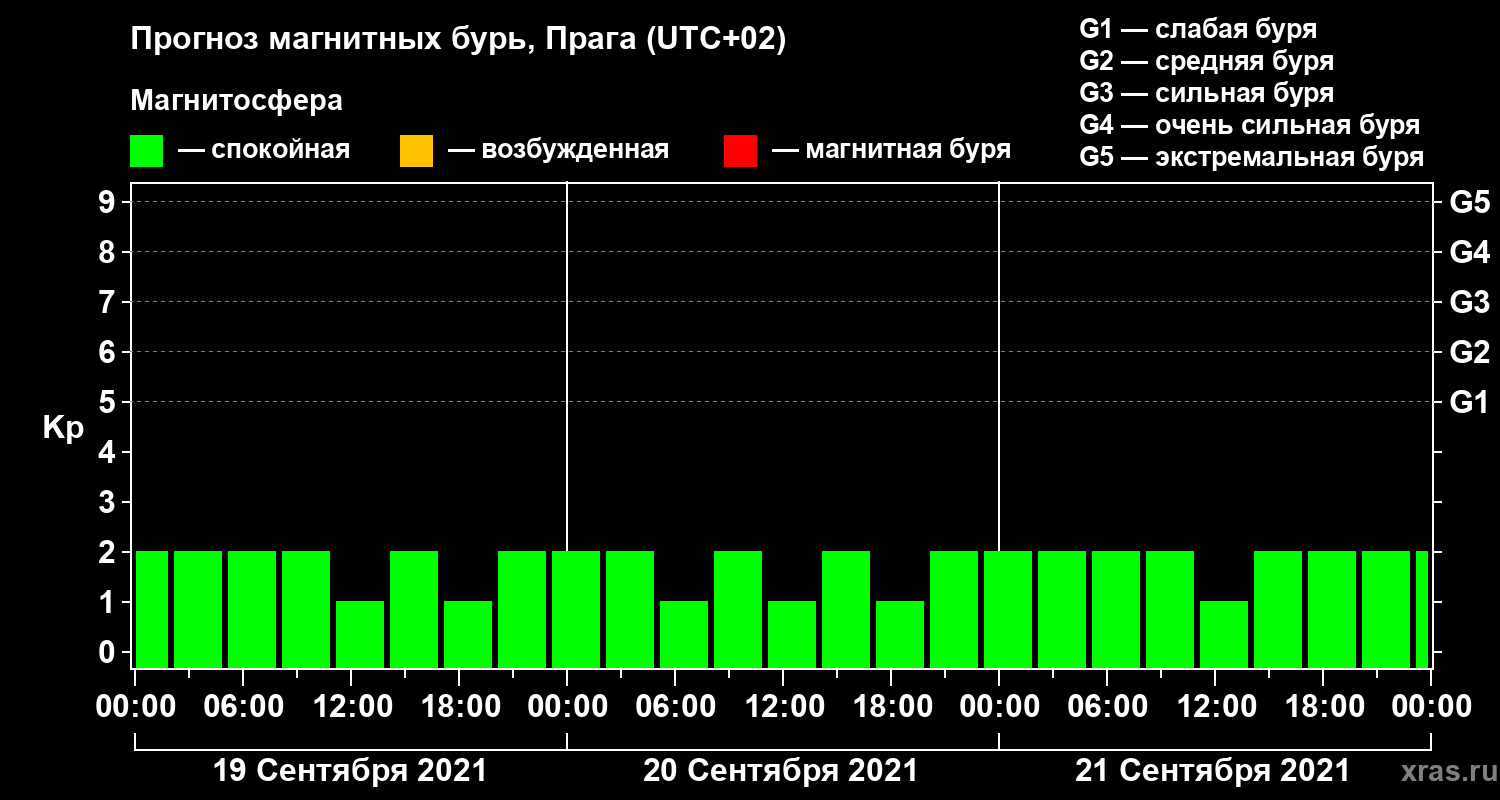 Прогноз магнитных бурь в Праге — 19 сентября 2021 года