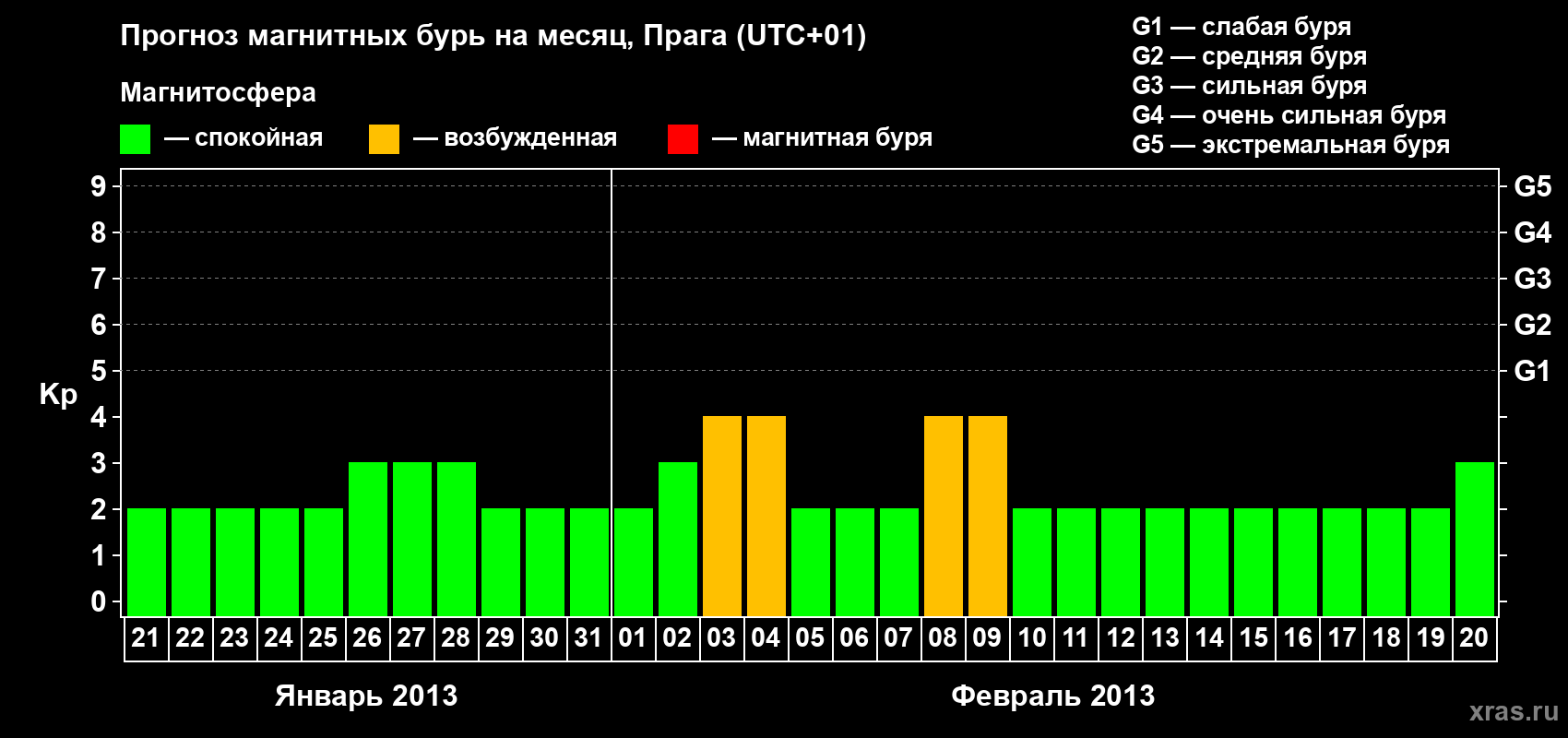 Прогноз магнитных бурь в Праге — 21 января 2013 года