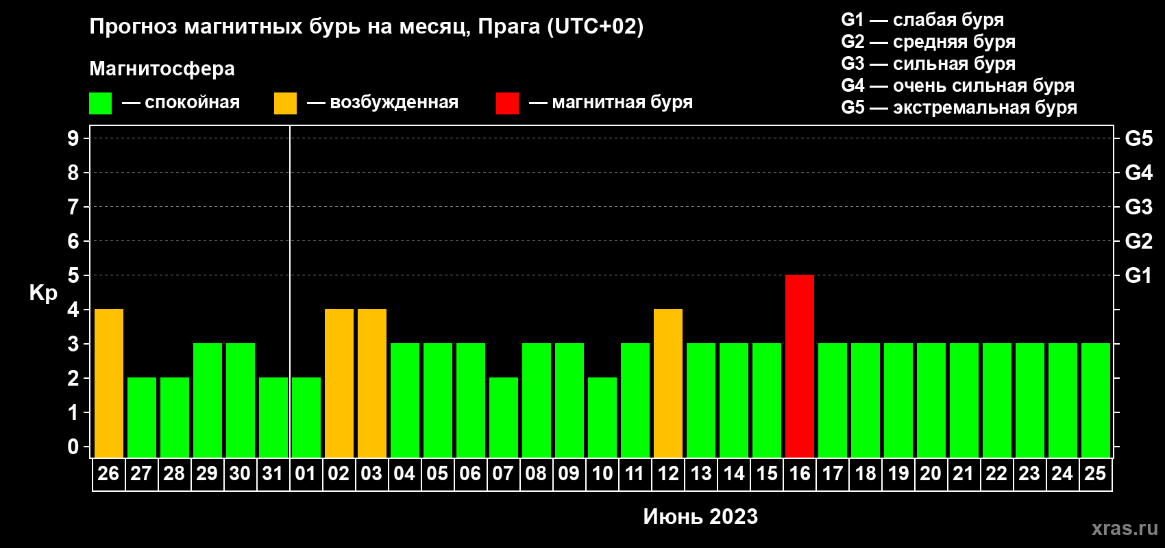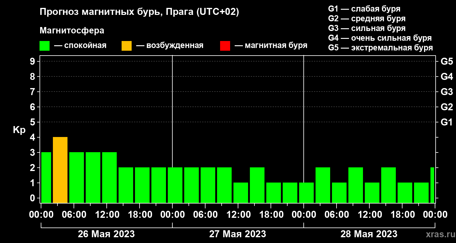 Прогноз магнитных бурь в Праге — 26 мая 2023 года