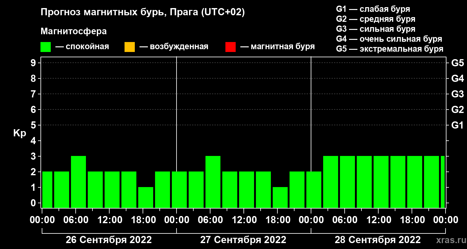 Прогноз магнитных бурь в Праге — 26 сентября 2022 года