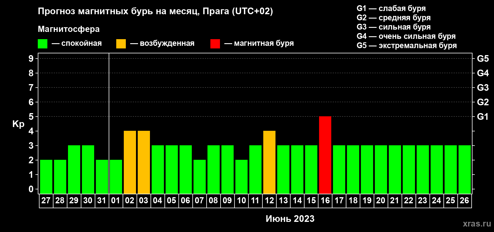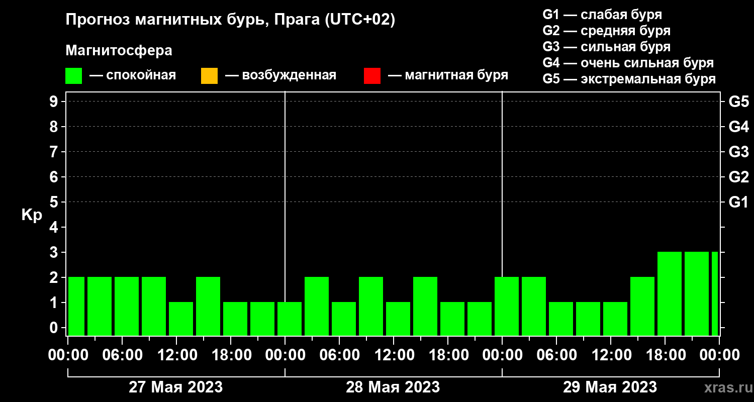 Прогноз магнитных бурь в Праге — 27 мая 2023 года