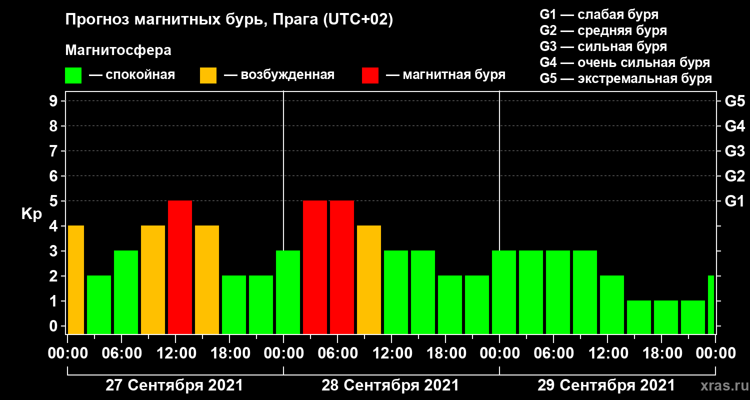 Прогноз магнитных бурь в Праге — 27 сентября 2021 года
