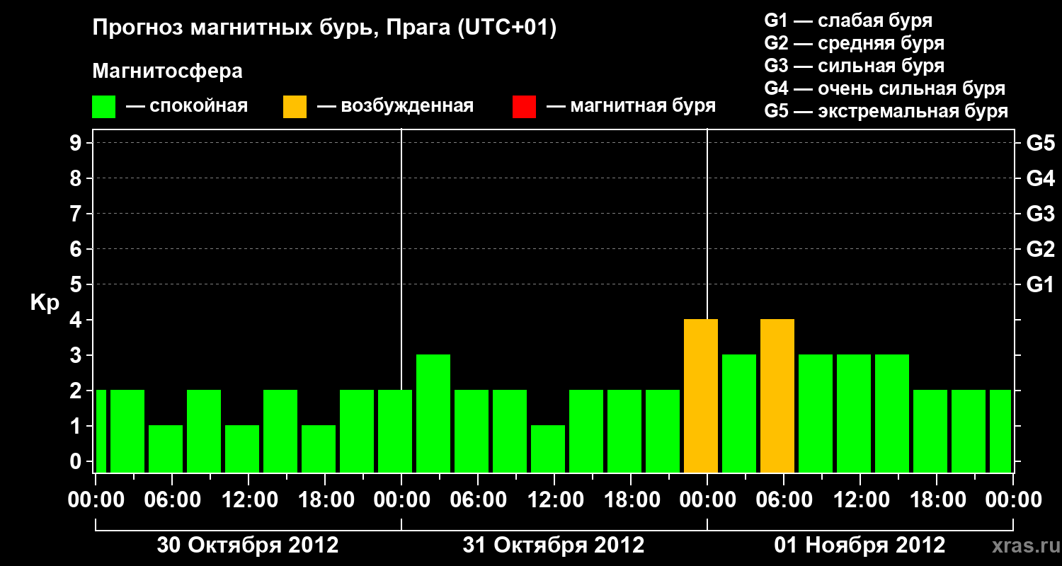 Прогноз магнитных бурь в Праге на 30 октября 2012 года
