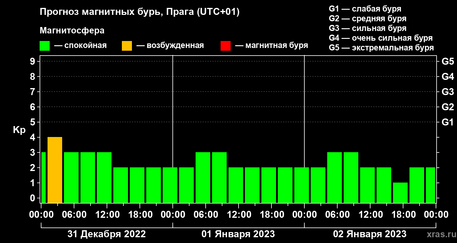 Прогноз магнитных бурь в Праге — 31 декабря 2022 года