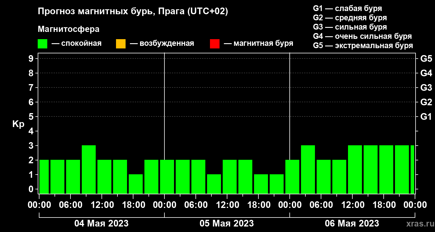 Прогноз магнитных бурь в Праге — 4 мая 2023 года