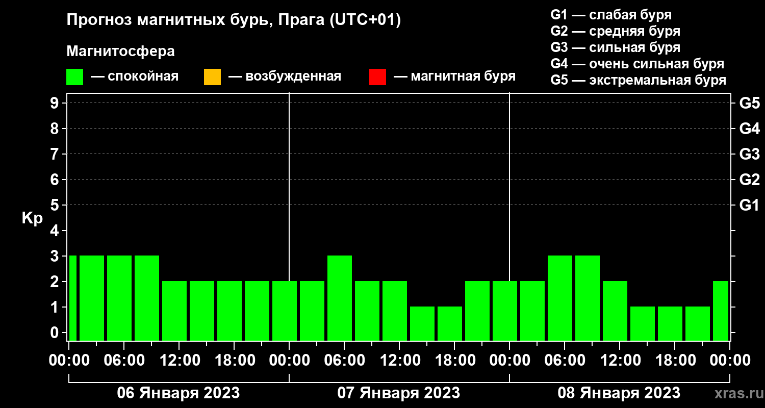 Прогноз магнитных бурь в Праге — 6 января 2023 года