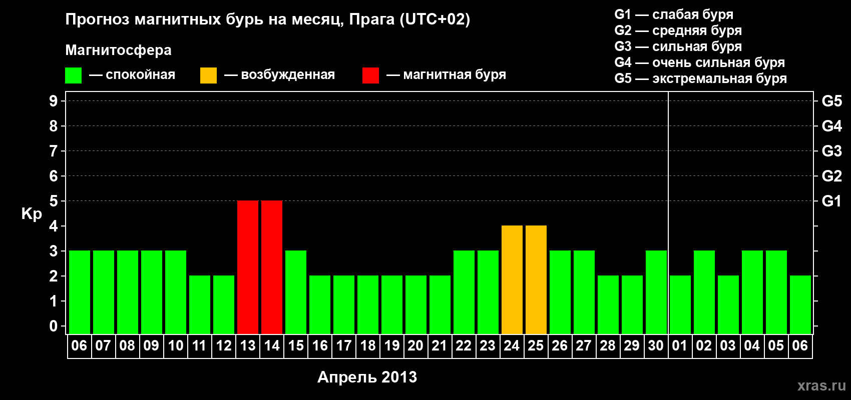 Прогноз магнитных бурь в Праге — 6 апреля 2013 года