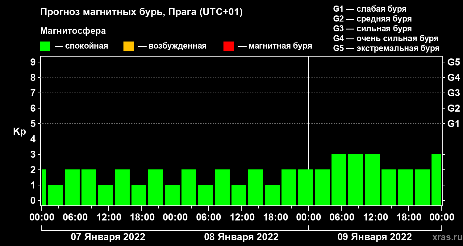 Прогноз магнитных бурь в Праге — 7 января 2022 года