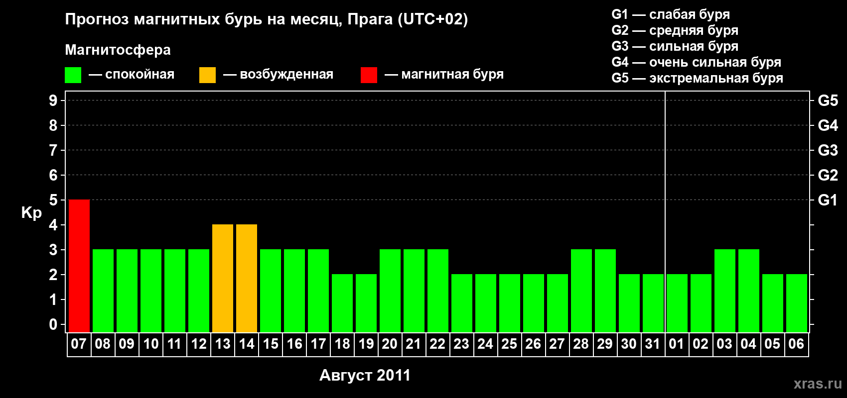 Прогноз магнитных бурь в Праге — 7 августа 2011 года