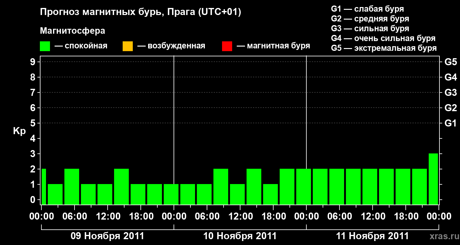 Прогноз магнитных бурь в Праге — 9 ноября 2011 года