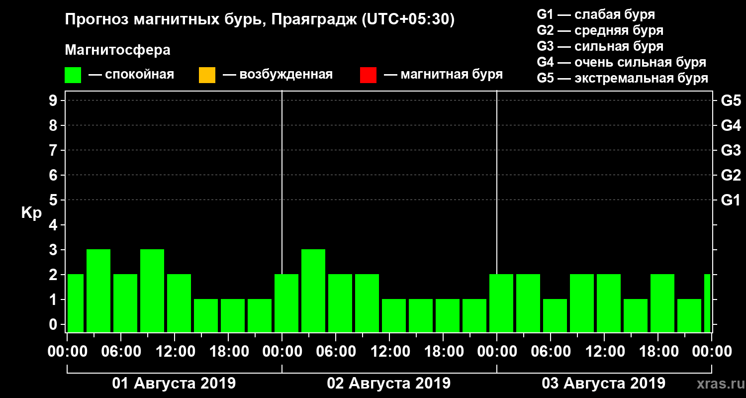 Прогноз магнитных бурь в Праяградже — 1 августа 2019 года