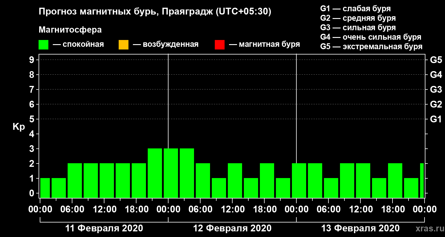 Прогноз магнитных бурь в Праяградже — 11 февраля 2020 года