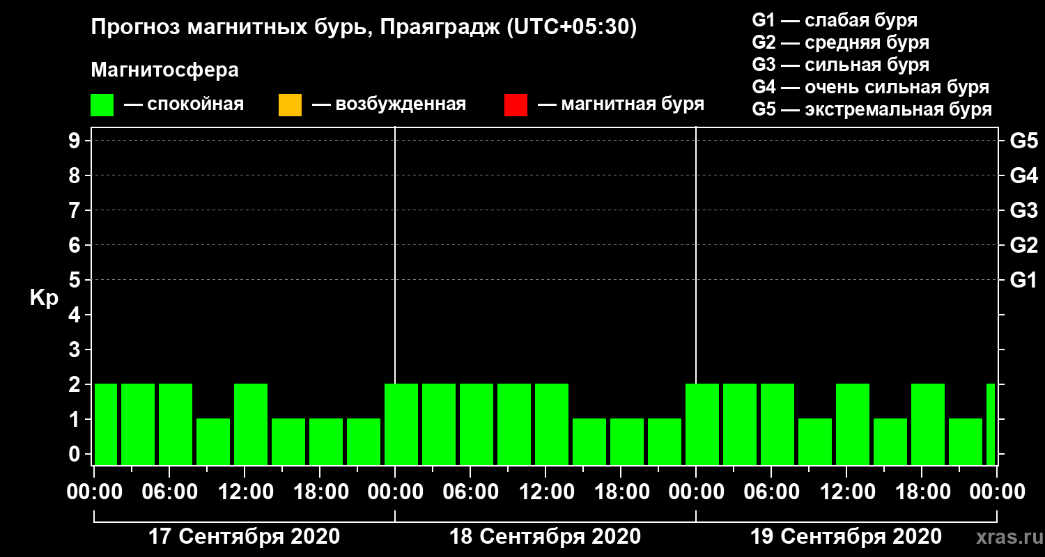 Прогноз магнитных бурь в Праяградже — 17 сентября 2020 года