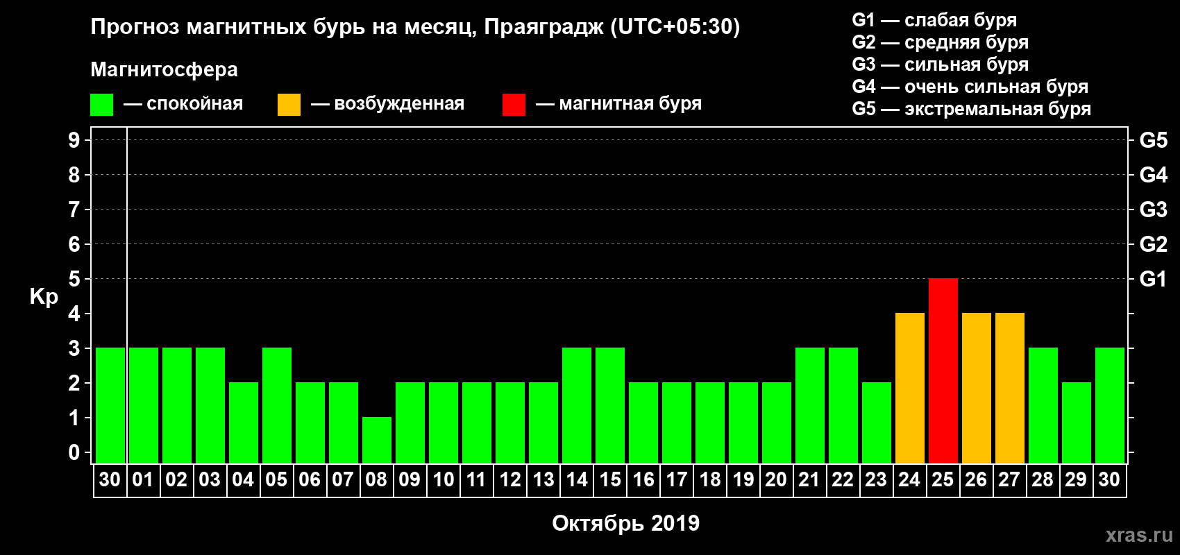 Прогноз магнитных бурь в Праяградже — 30 сентября 2019 года