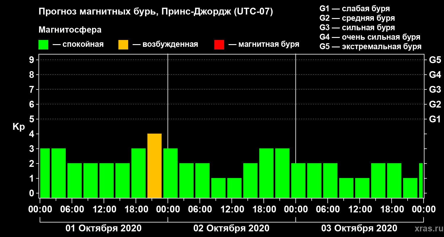 Прогноз магнитных бурь в Принс-Джордже — 1 октября 2020 года