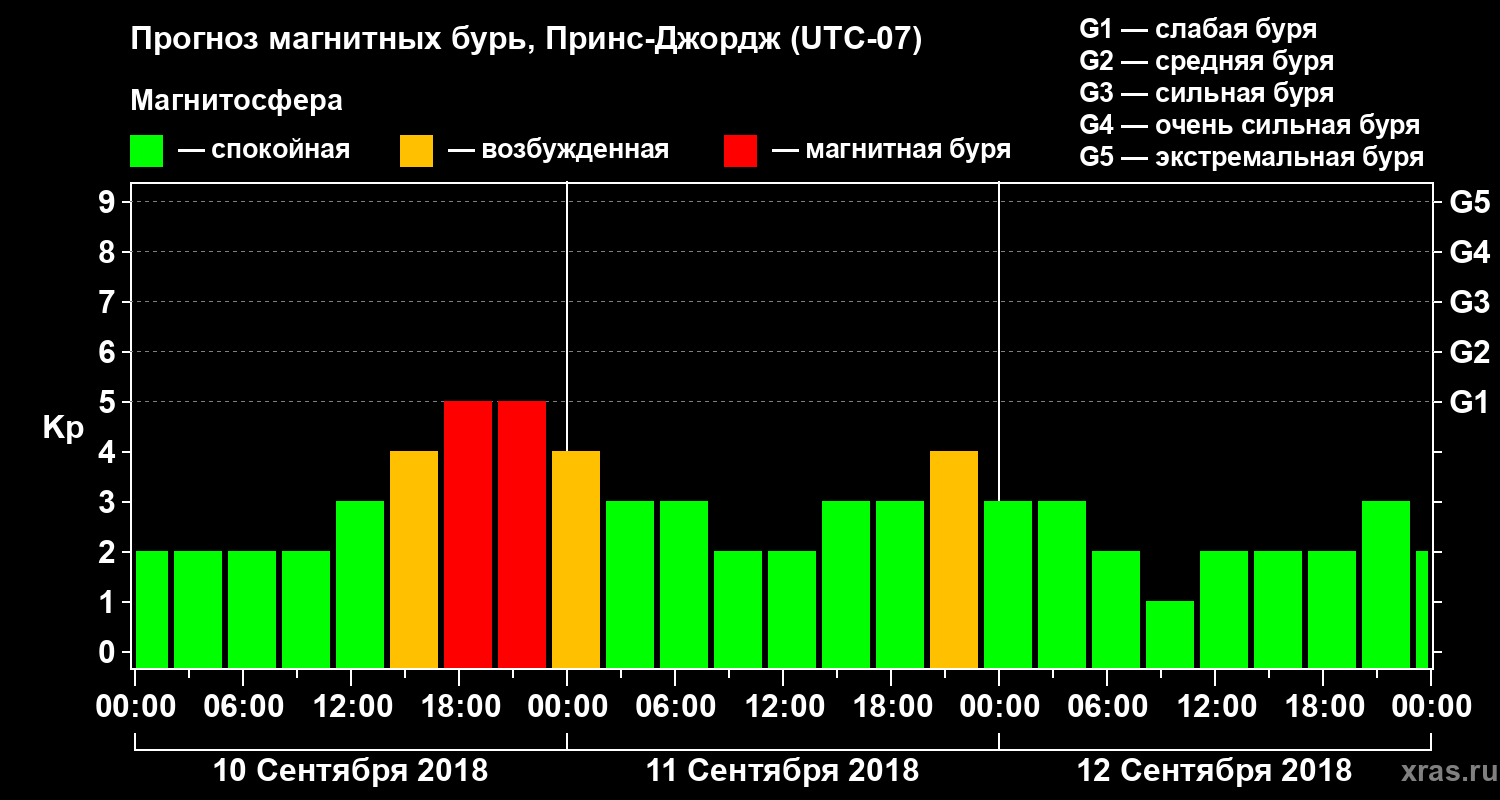 Прогноз магнитных бурь в Принс-Джордже — 10 сентября 2018 года