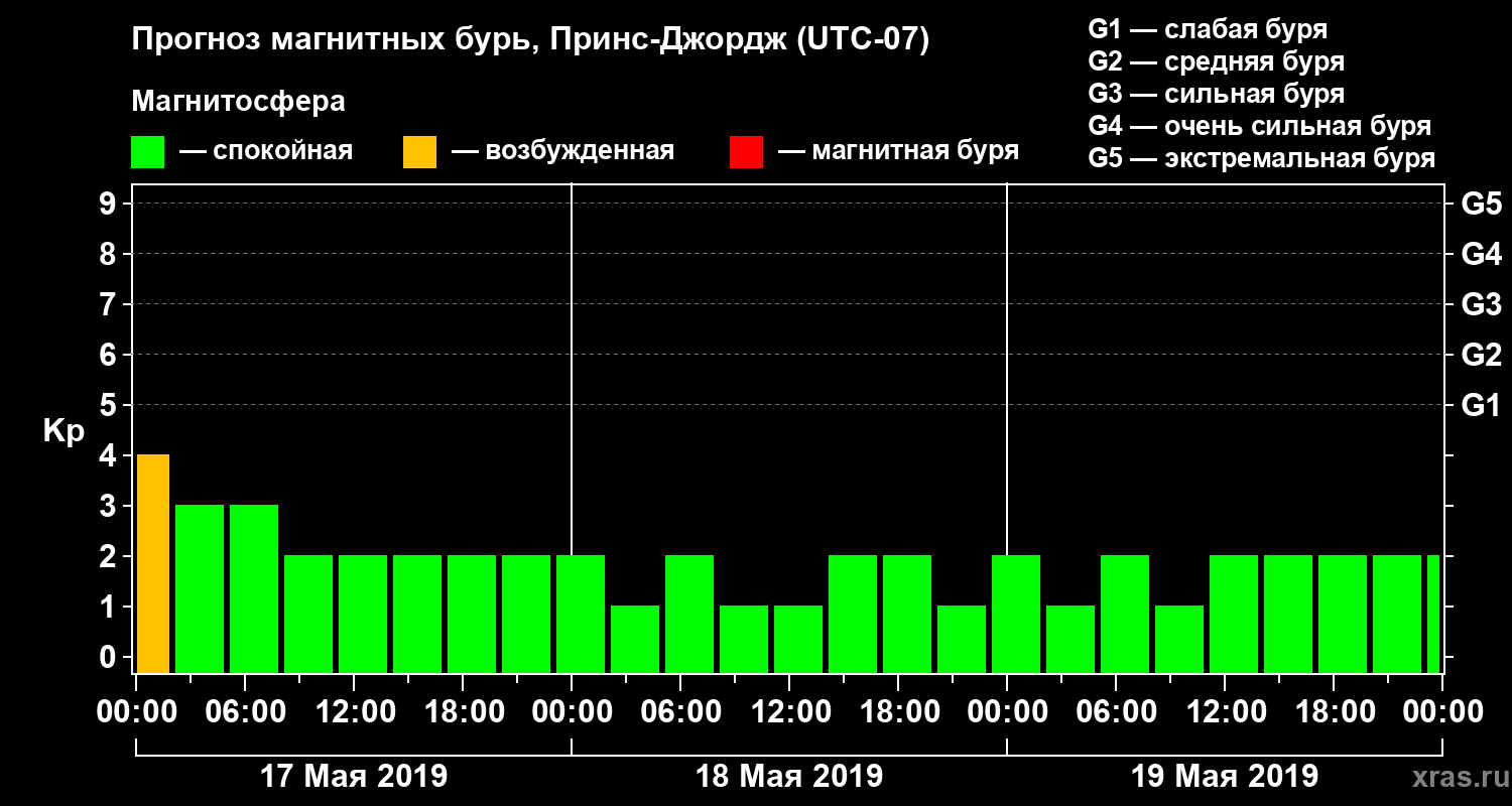 Прогноз магнитных бурь в Принс-Джордже — 17 мая 2019 года