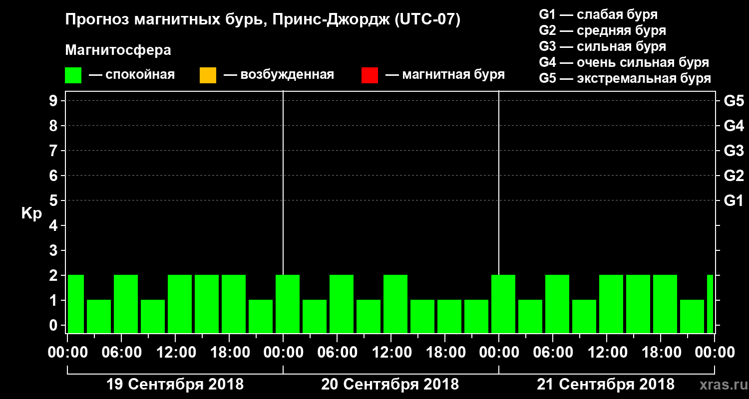 Прогноз магнитных бурь в Принс-Джордже — 19 сентября 2018 года