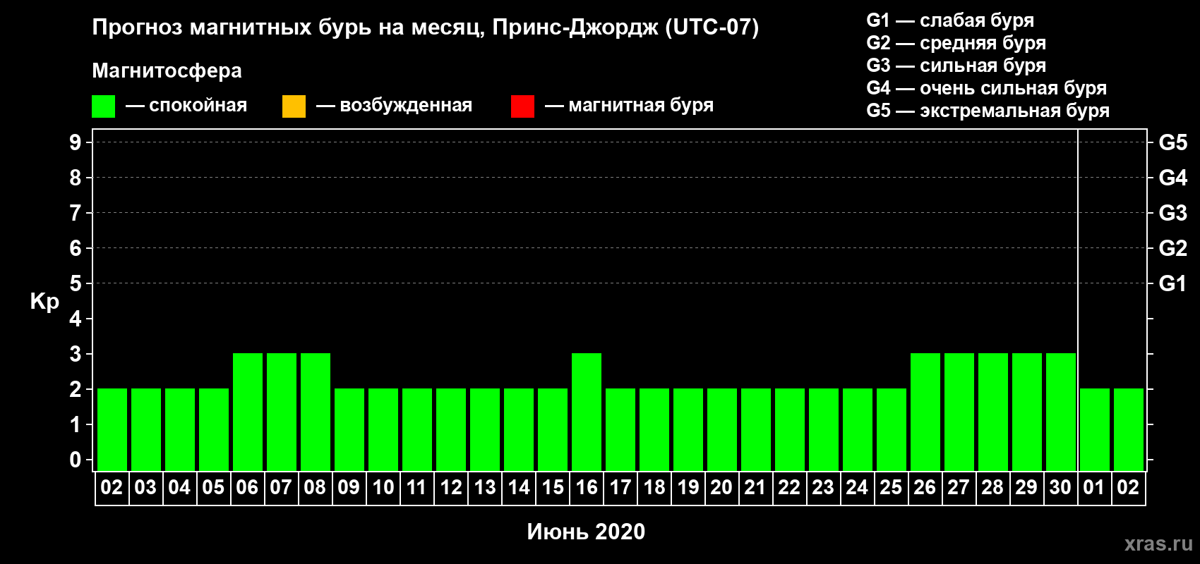 Прогноз магнитных бурь в Принс-Джордже — 2 июня 2020 года