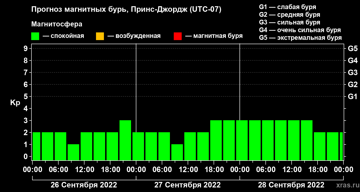 Прогноз магнитных бурь в Принс-Джордже на 26 сентября 2022 года