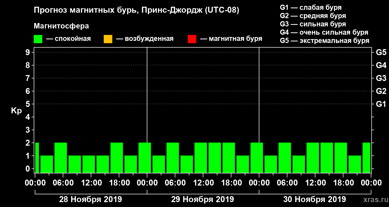 Прогноз магнитных бурь в Принс-Джордже — 28 ноября 2019 года