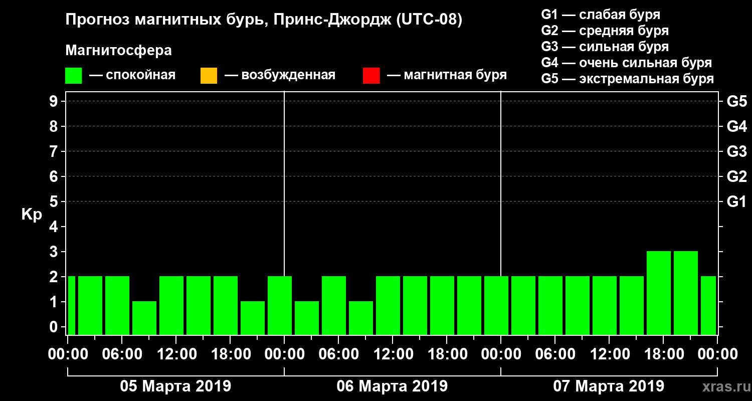 Прогноз магнитных бурь в Принс-Джордже на 5 марта 2019 года