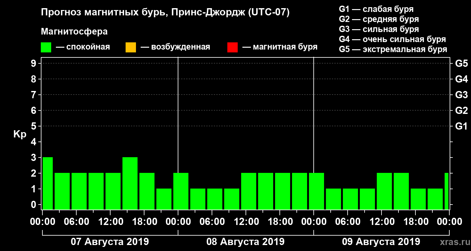 Прогноз магнитных бурь в Принс-Джордже на 7 августа 2019 года