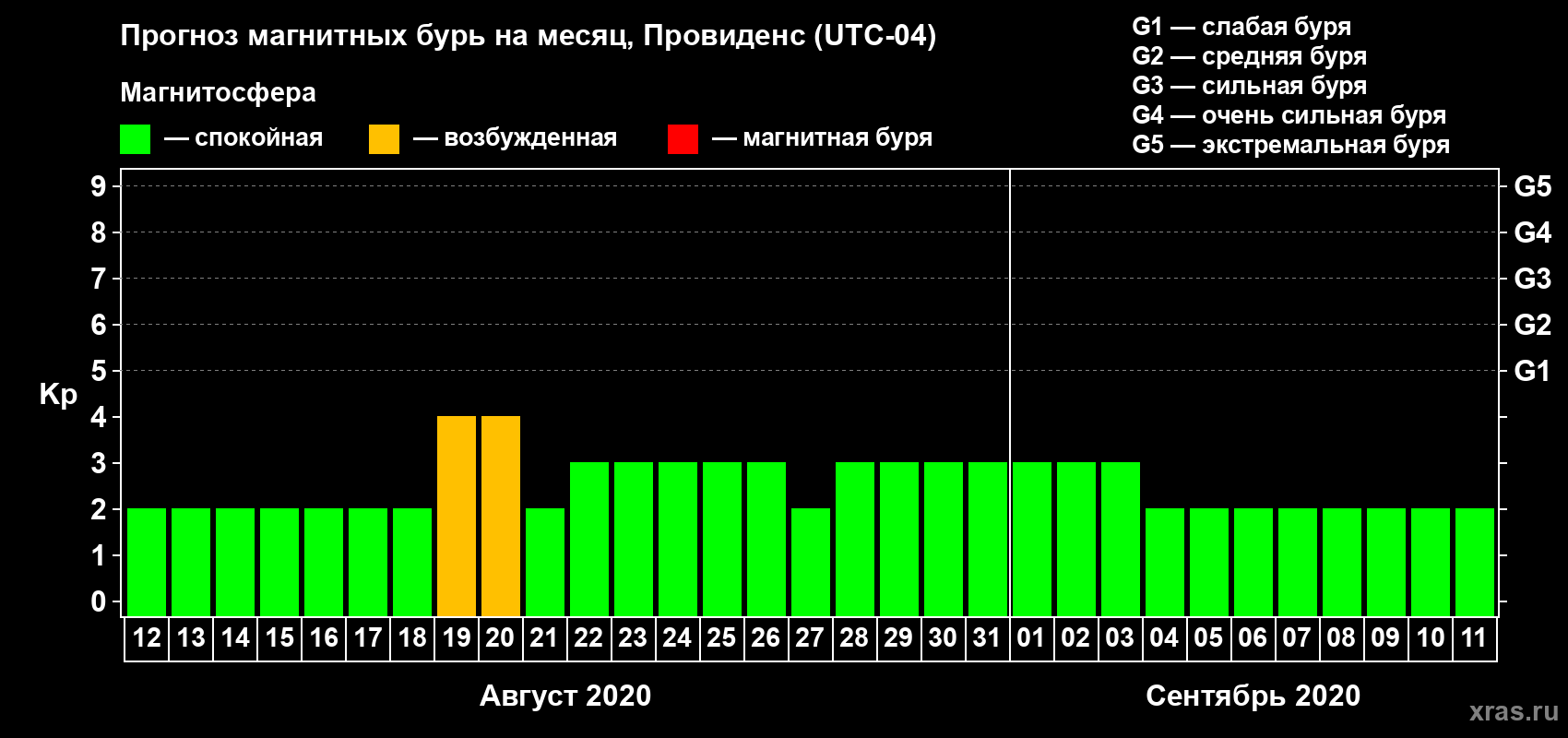 Прогноз магнитных бурь в Провиденсе на 12 августа 2020 года