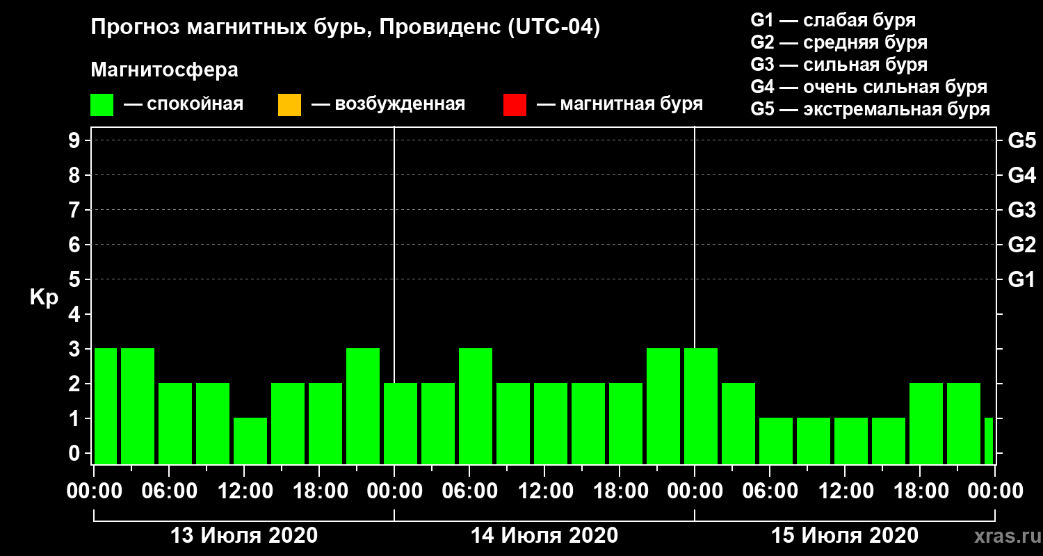 Прогноз магнитных бурь в Провиденсе на 13 июля 2020 года