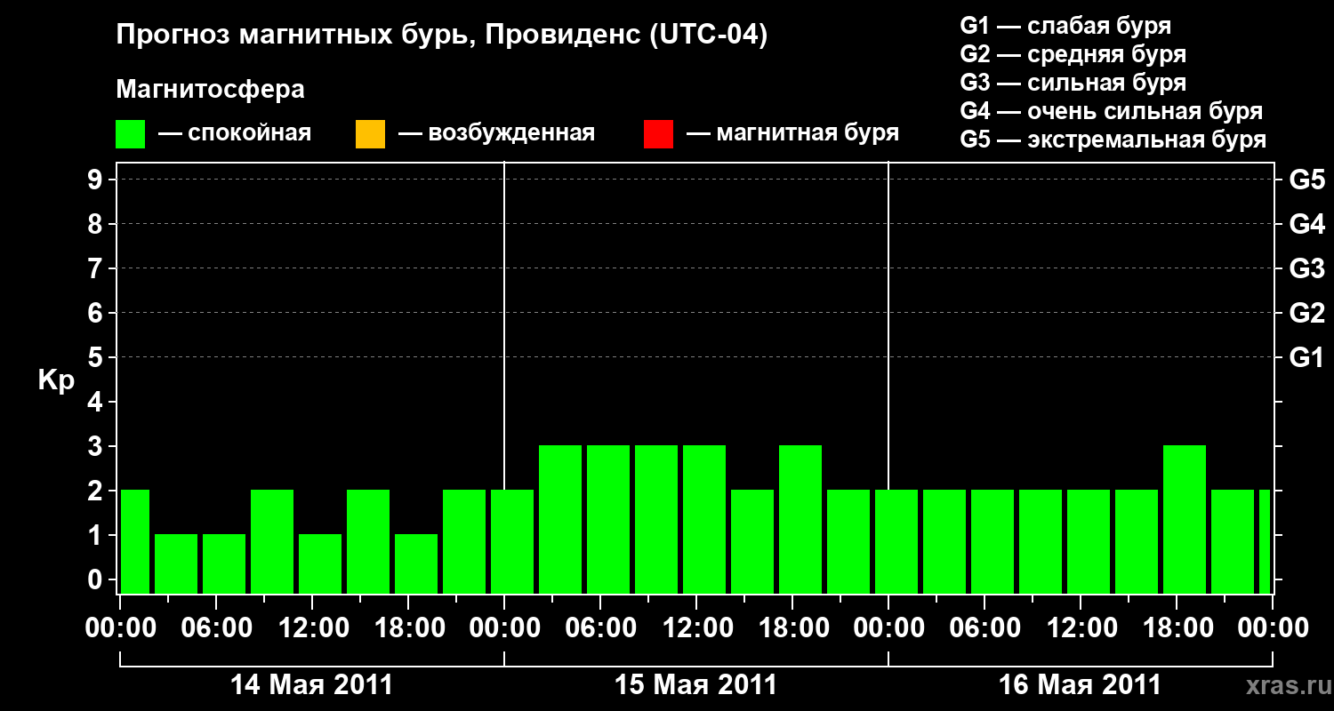 Прогноз магнитных бурь в Провиденсе на 14 мая 2011 года