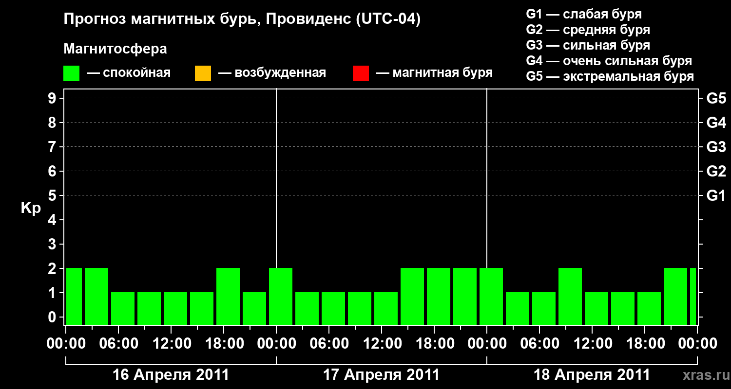 Прогноз магнитных бурь в Провиденсе — 16 апреля 2011 года