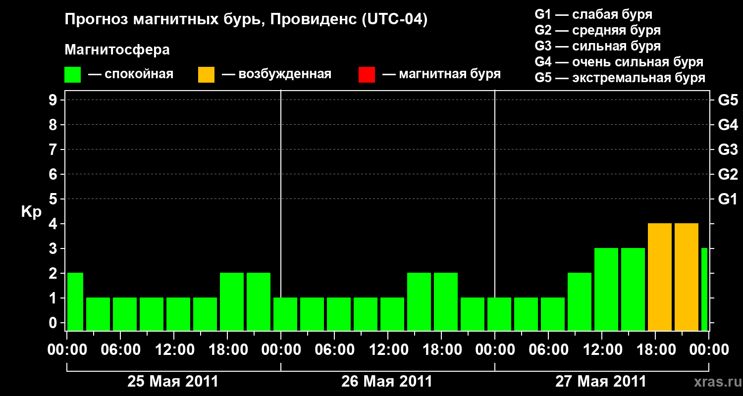 Прогноз магнитных бурь в Провиденсе — 25 мая 2011 года