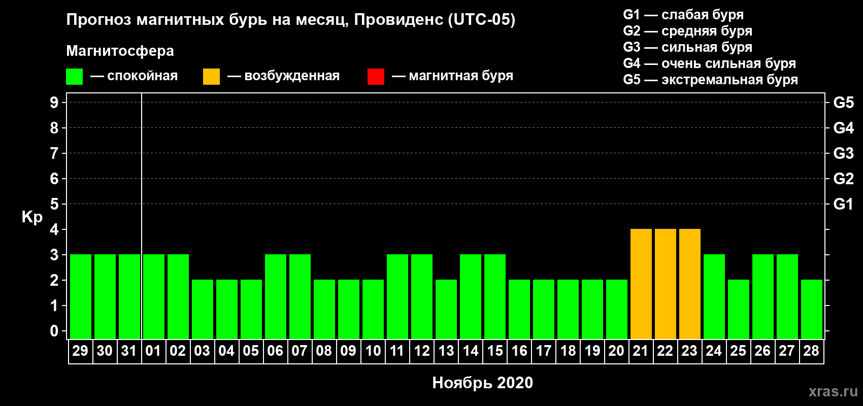 Прогноз магнитных бурь в Провиденсе — 29 октября 2020 года