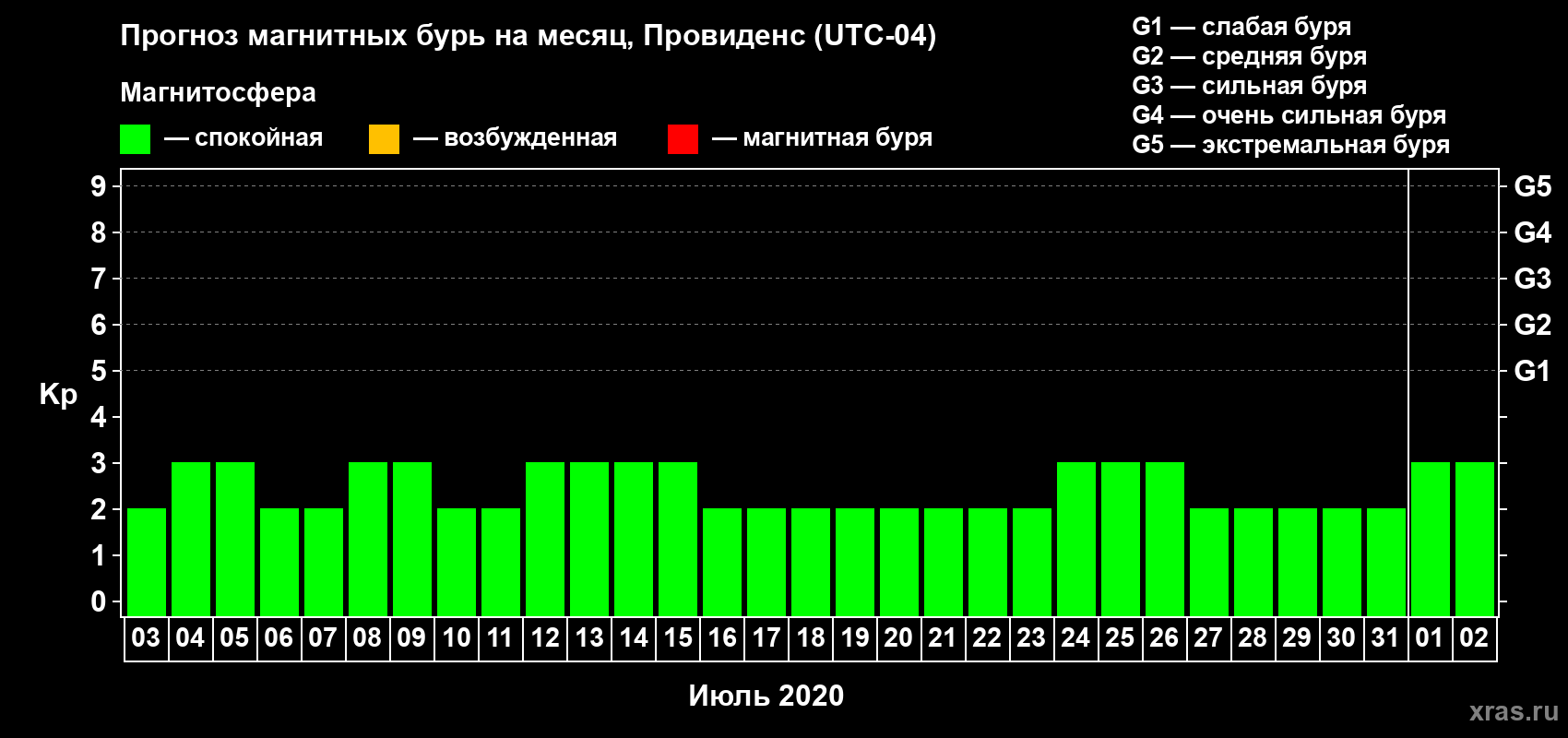 Прогноз магнитных бурь в Провиденсе — 3 июля 2020 года