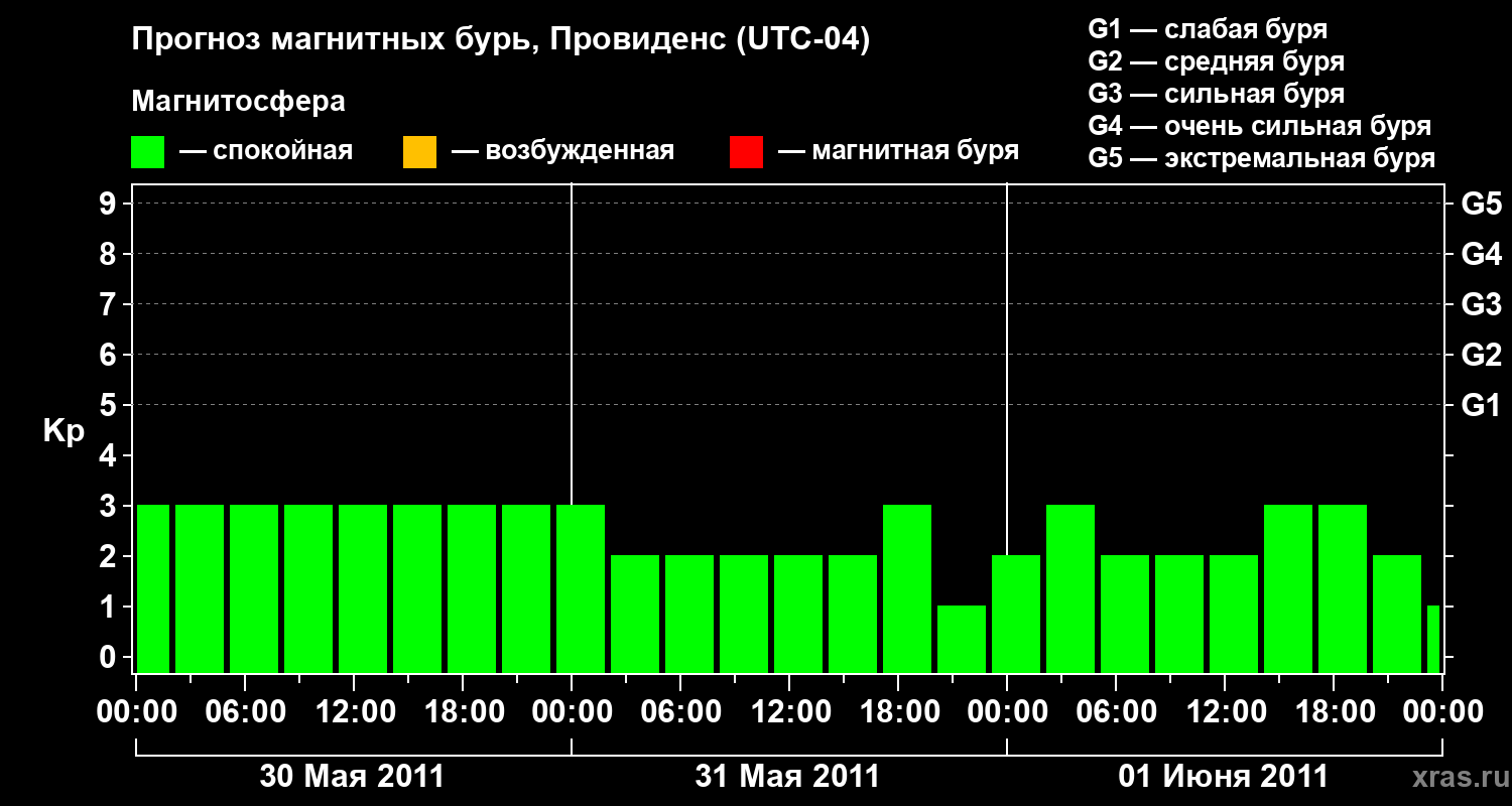 Прогноз магнитных бурь в Провиденсе — 30 мая 2011 года