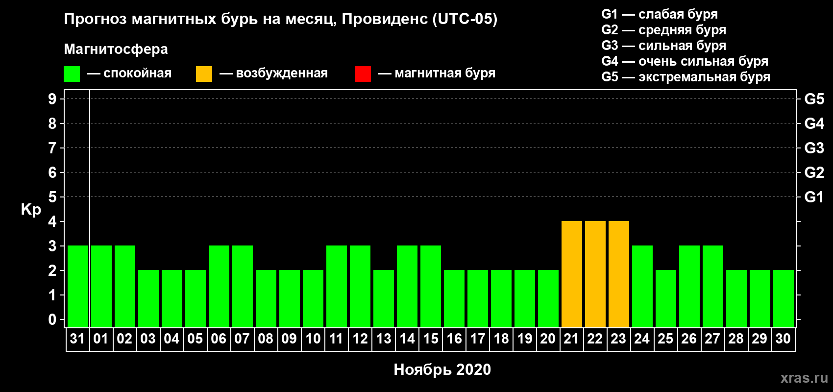 Прогноз магнитных бурь в Провиденсе — 31 октября 2020 года