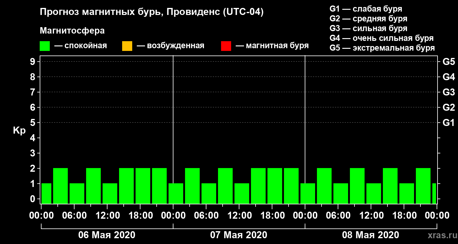Прогноз магнитных бурь в Провиденсе на 6 мая 2020 года