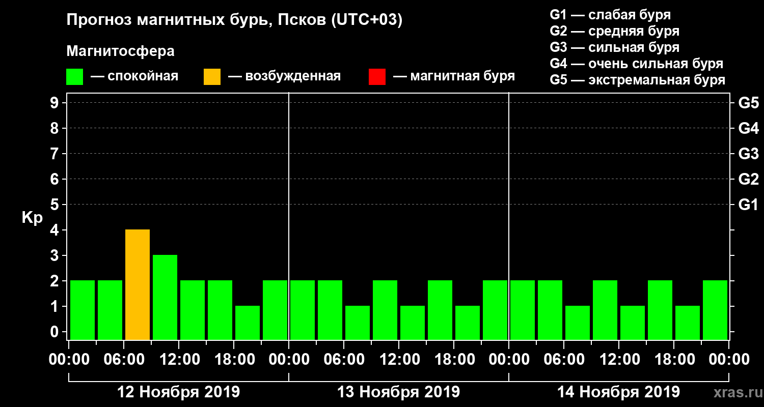 Прогноз магнитных бурь в Пскове — 12 ноября 2019 года