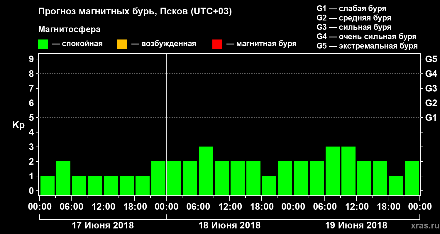 Прогноз магнитных бурь в Пскове — 17 июня 2018 года